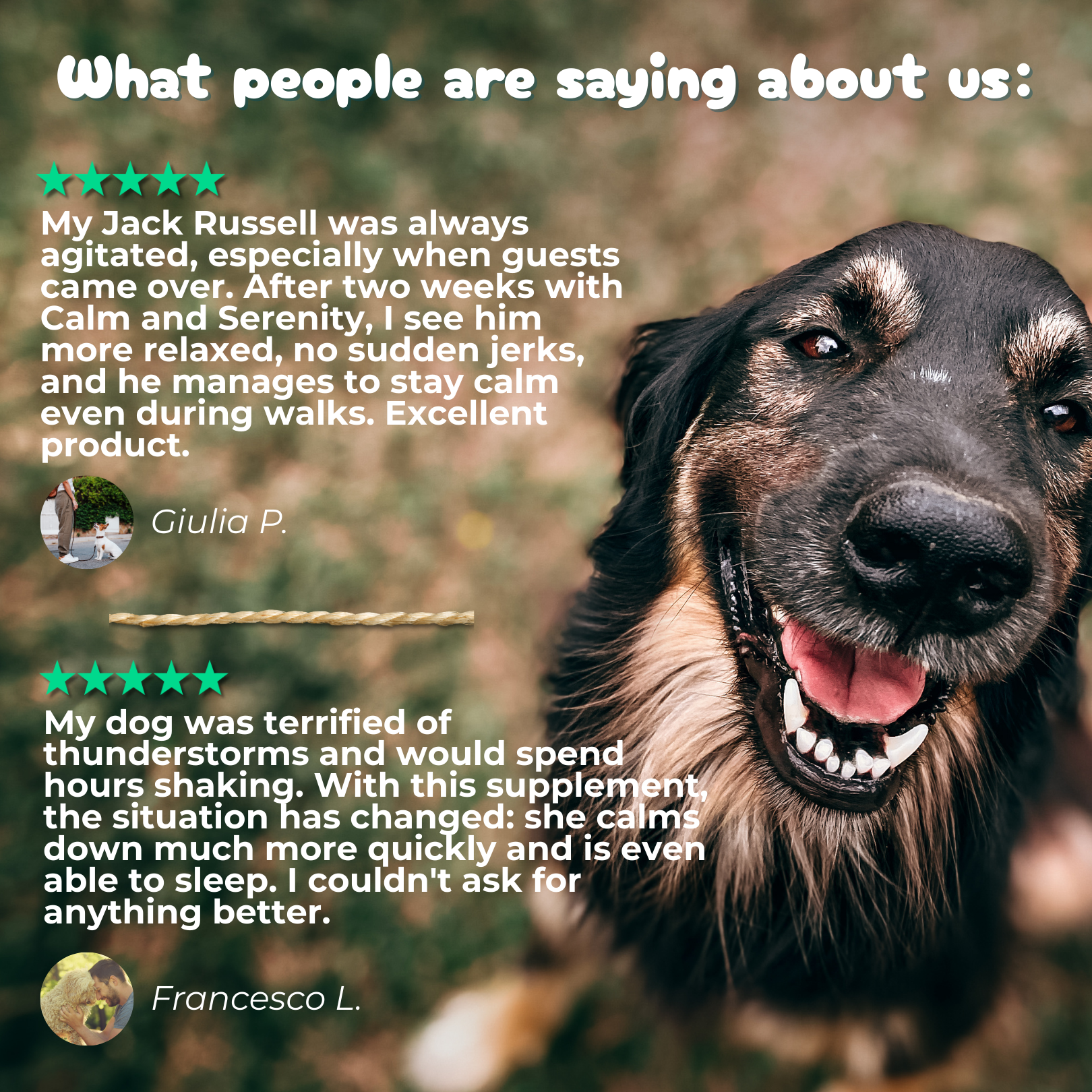 "With BauVet Calma&Serenità, we noticed less agitation and stress, and more balanced behavior from the first week. Highly recommended 👍"