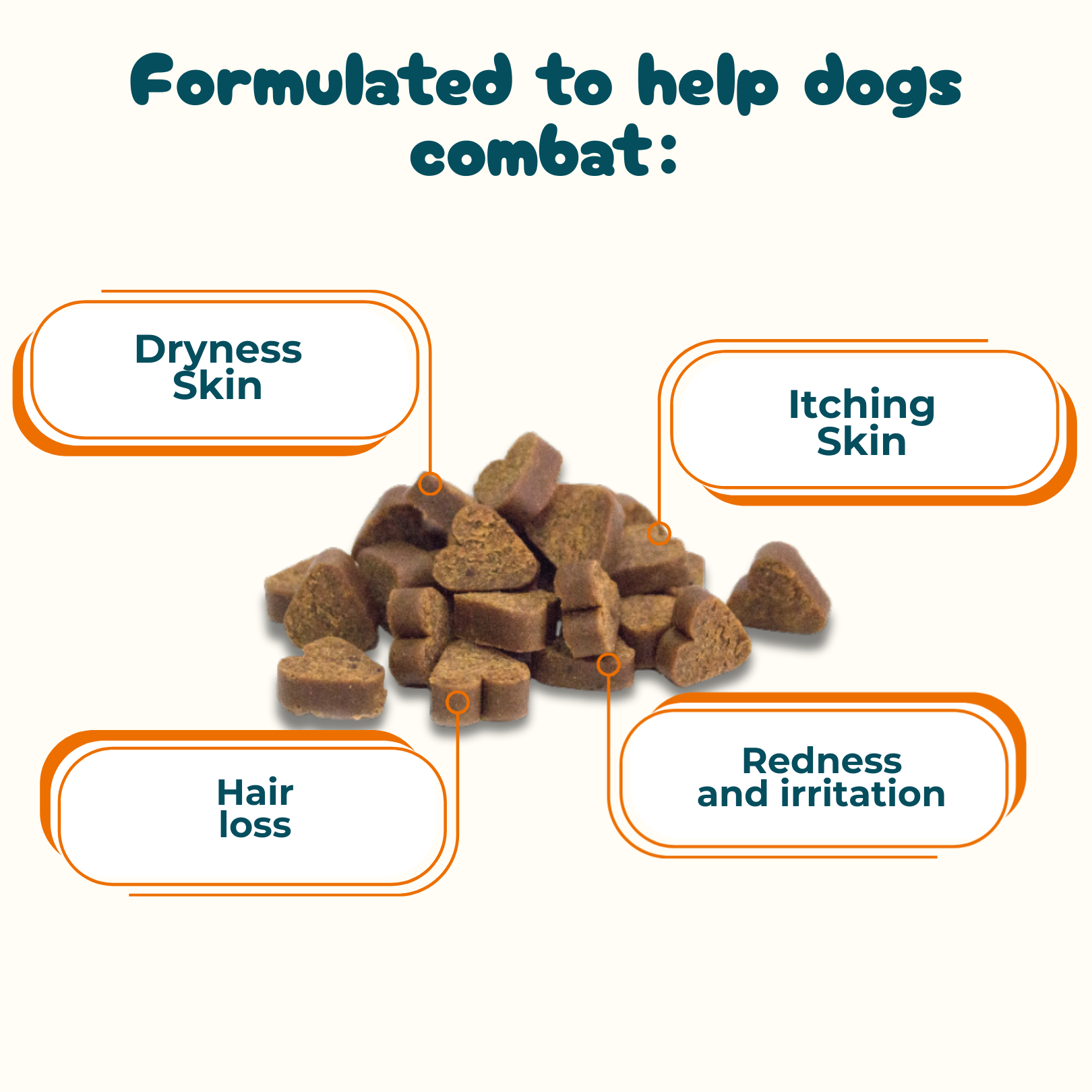Each serving contains a targeted combination of Omega-3 fatty acids (EPA/DHA), essential vitamins and minerals to support skin health, reduce irritation and promote the regrowth of a shiny, strong coat.